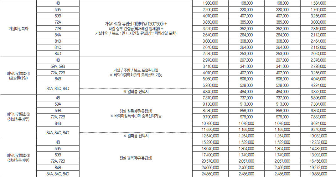 계약금 10%(2회차 분납), 중도금 60%(6회차 각 10%), 잔금(30%)으로 구성된다.