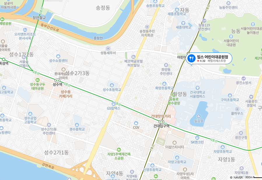 빕스 어린이대공원점은 광진구 광나루로 410 KCC파크타운 2층에 위치하고 있다.