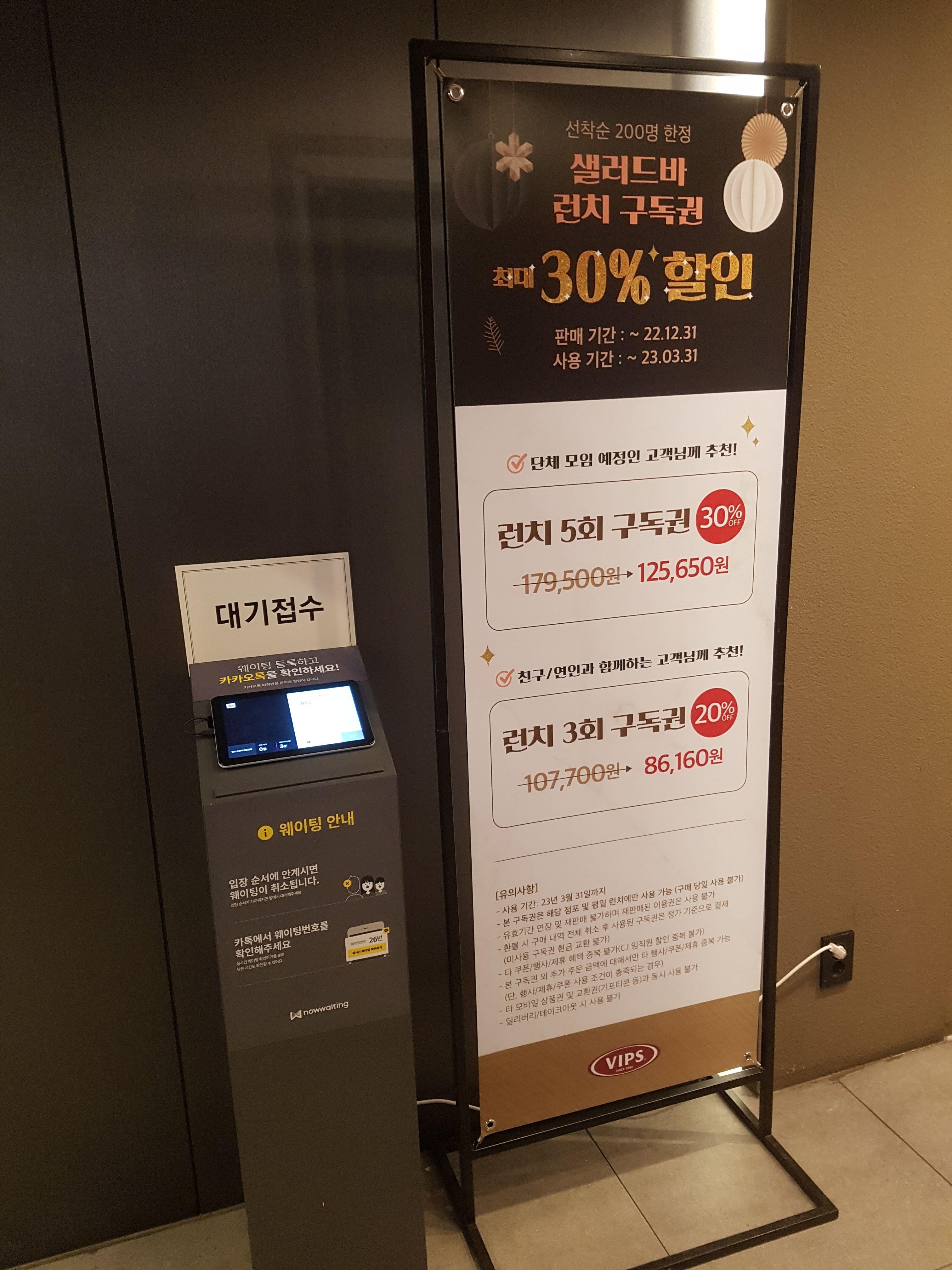 판매기간이 올해까지여서 그렇지만, 샐러드바 런치 구독권을 30% 할인한다니 관심 있으신 분들은 서둘러 주시길^^