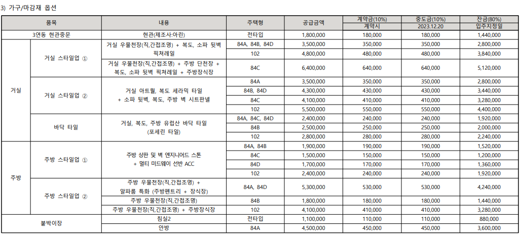 중도금 대출에 대한 이자는 “중도금 이자후불제” 조건으로 전체 공급대금의 60% 범위 내에서 시행위탁자 및 시공사가 지정하는 대출금융기관에서 대출 진행할 경우에 한하여 적용된다.
