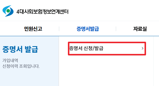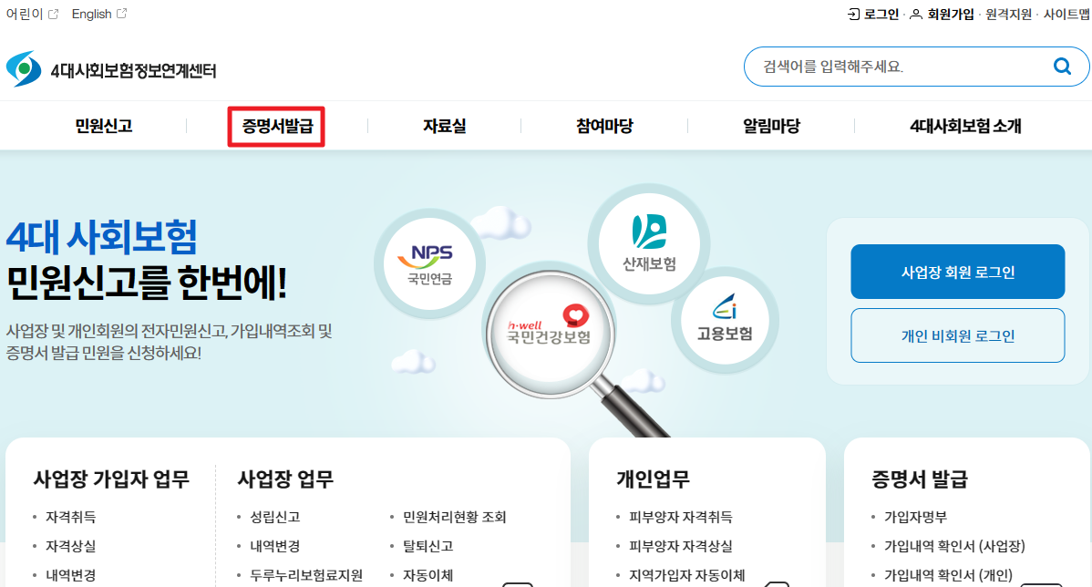 4대사회보험 정보연계센터 홈페이지에서 발급을 받을 수 있다.
