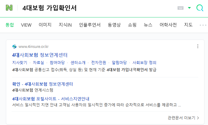 우선 검색창에 '4대보험 가입확인서'라 검색하면 다음과 같이 나온다.