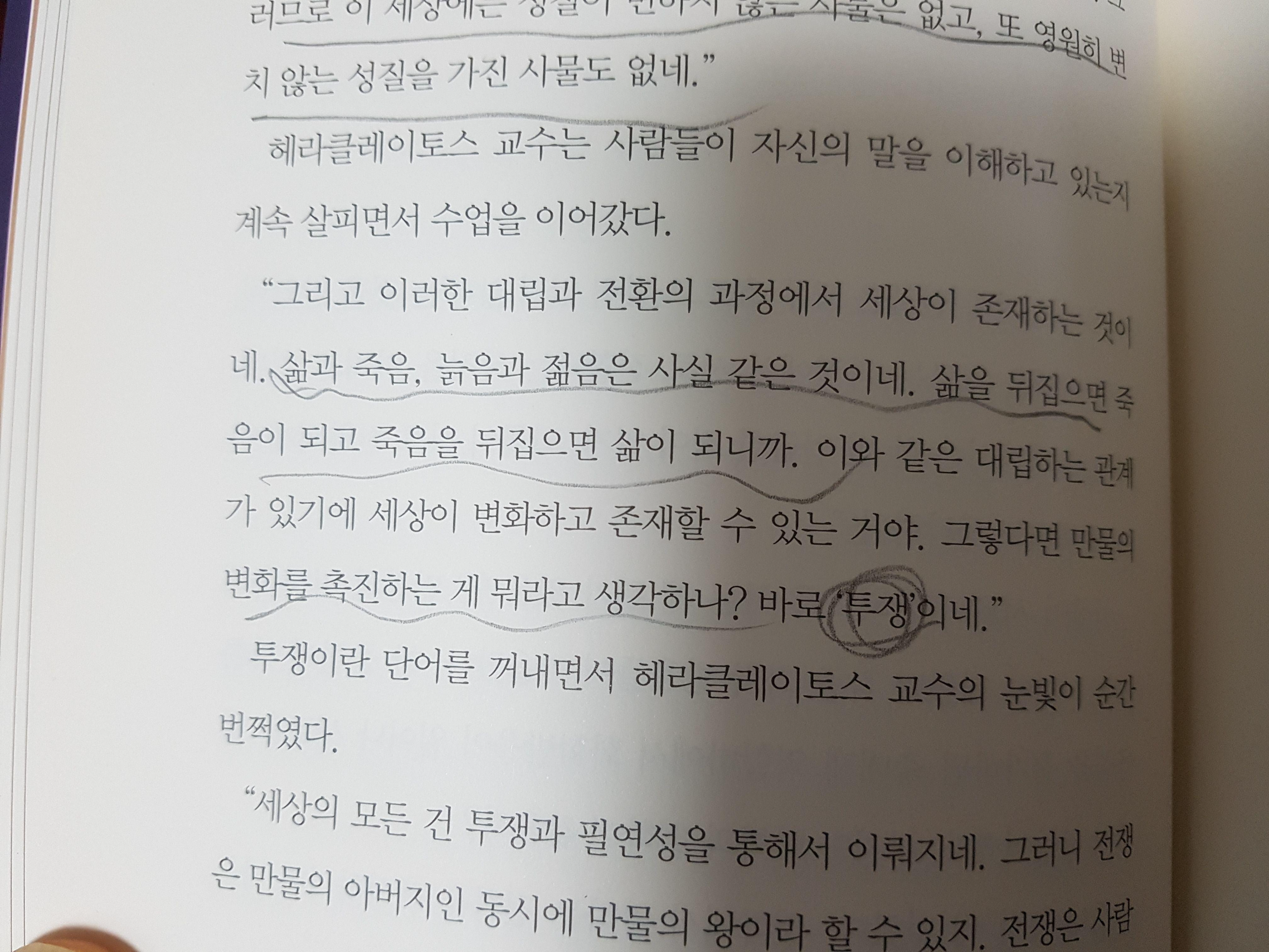 헤라클레이토스는 '삶과 죽음, 늙음과 젊음은 같은 것이며, 대립관계가 있기에 세상이 존재한다는 투쟁을 철학의 기본 관념으로 설파한다.