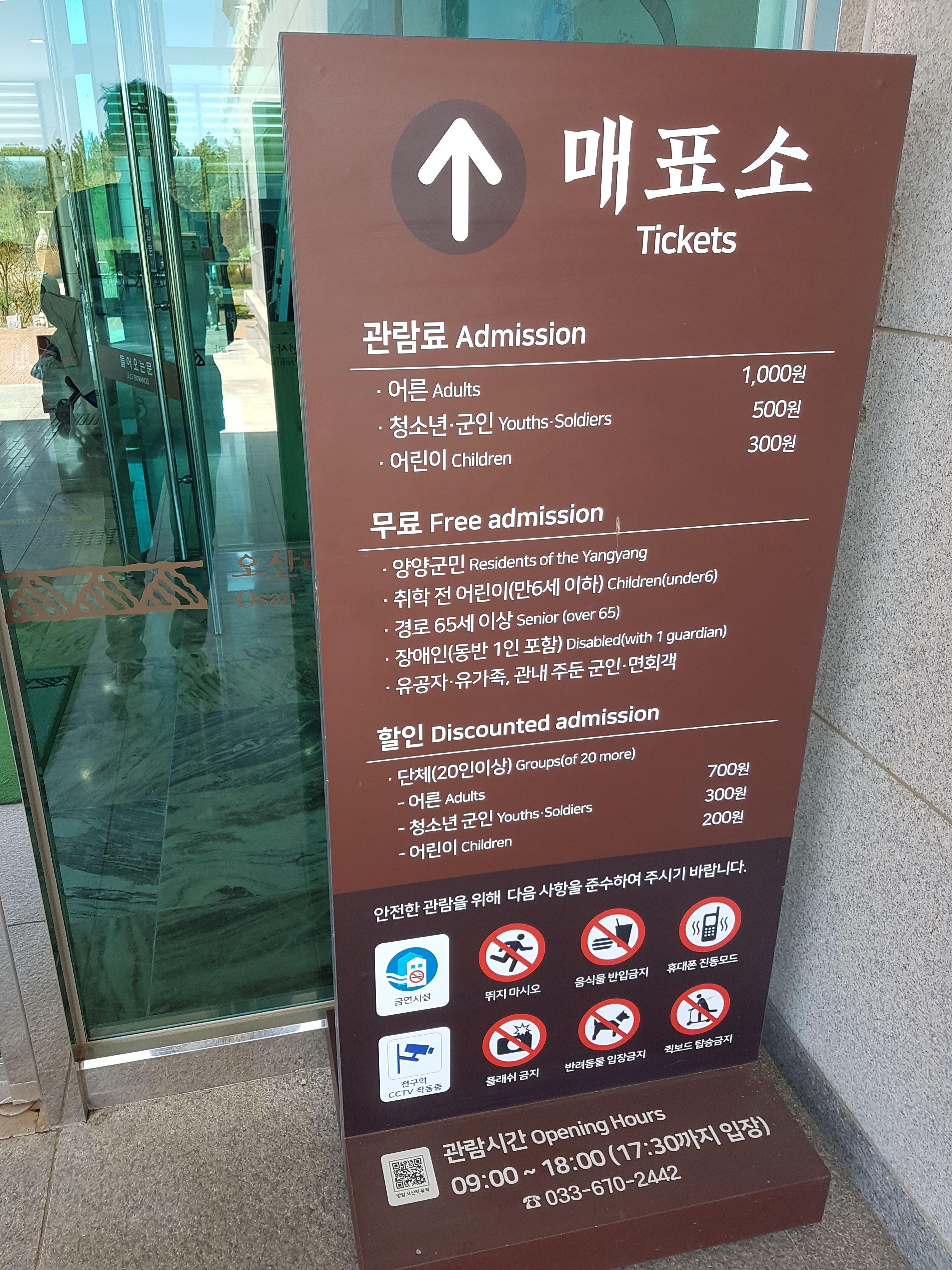관람료는 어른이 천원, 청소년 500원, 어린이 300원으로 책정돼 있다.