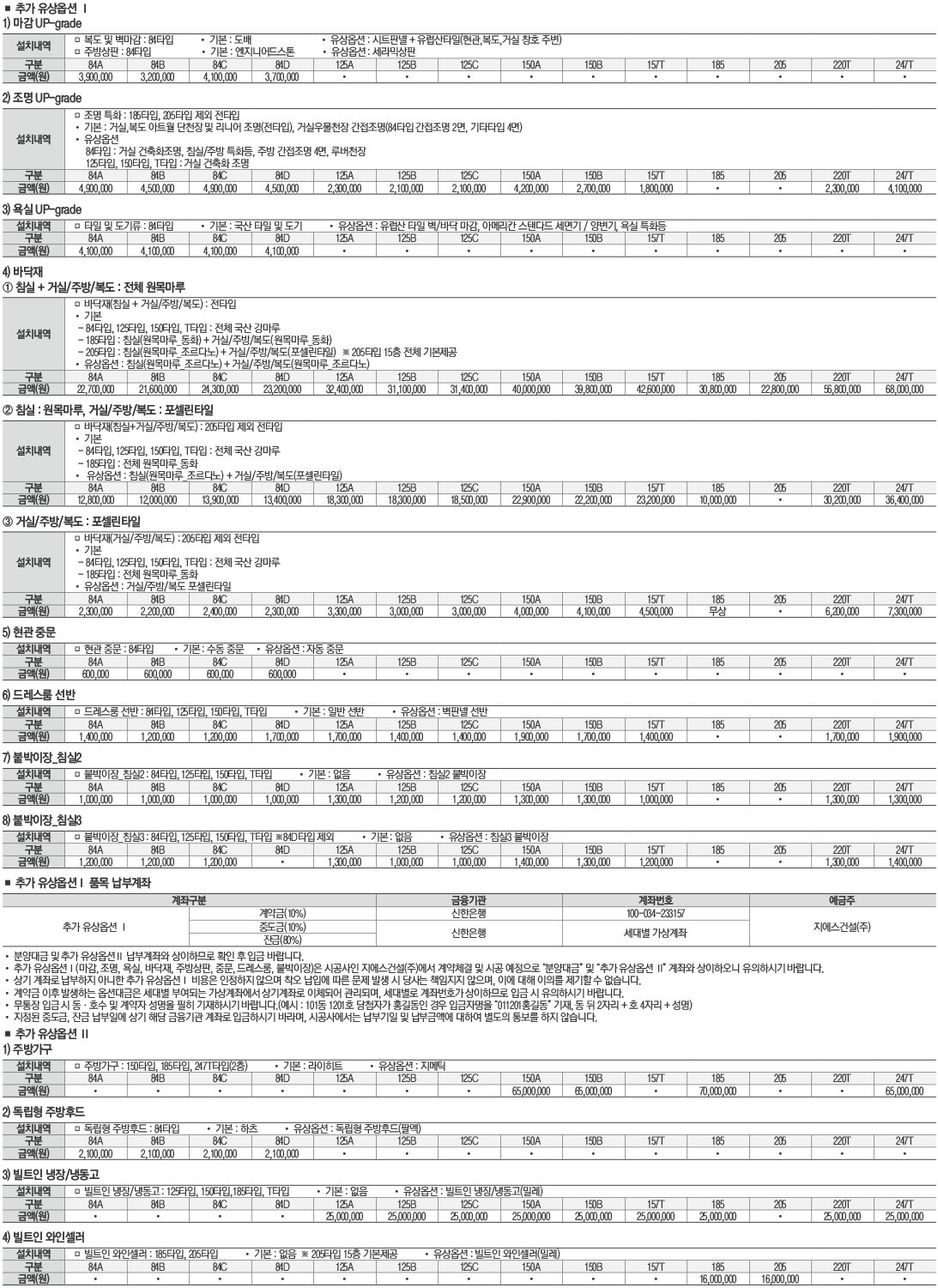 - 주택형별 계약금액 계약금(10%), 중도금(60%), 잔금(30%)