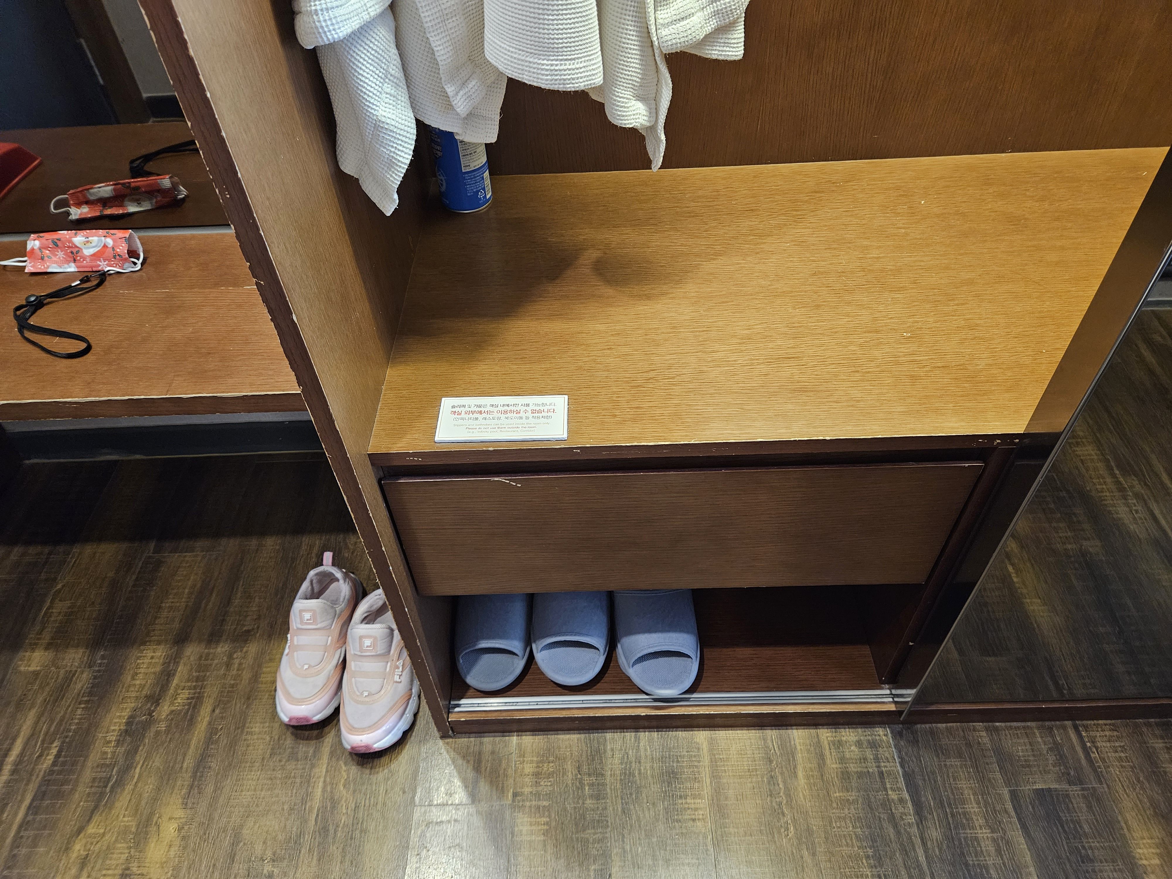 객실에서는 슬리퍼를 착용하면 좋다.