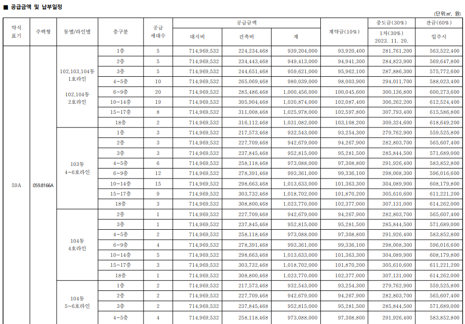 계약금 10%, 중도금 30%, 잔금 60%로 구성돼 있다.