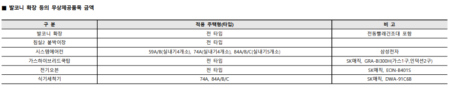- 발코니 확장 등의 무상제공 품목