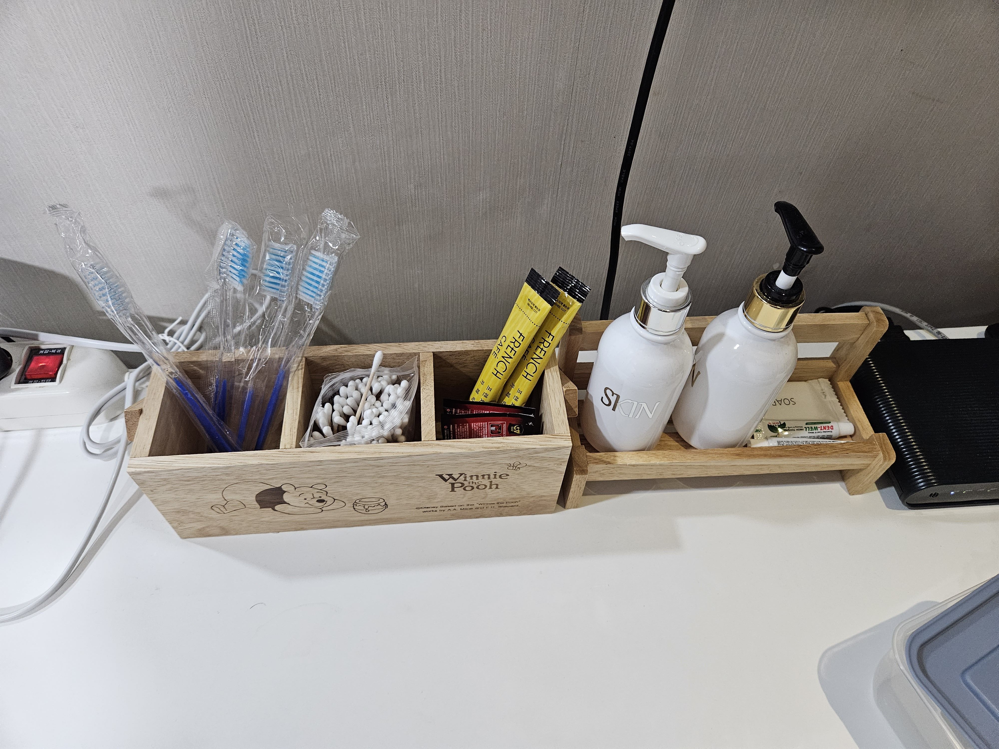 일회용 칫솔은 와이프가 사용해 봤는데 품질이 조금 떨어져서 집에서 가져온 칫솔로 양치질 하는 걸 추천한다.