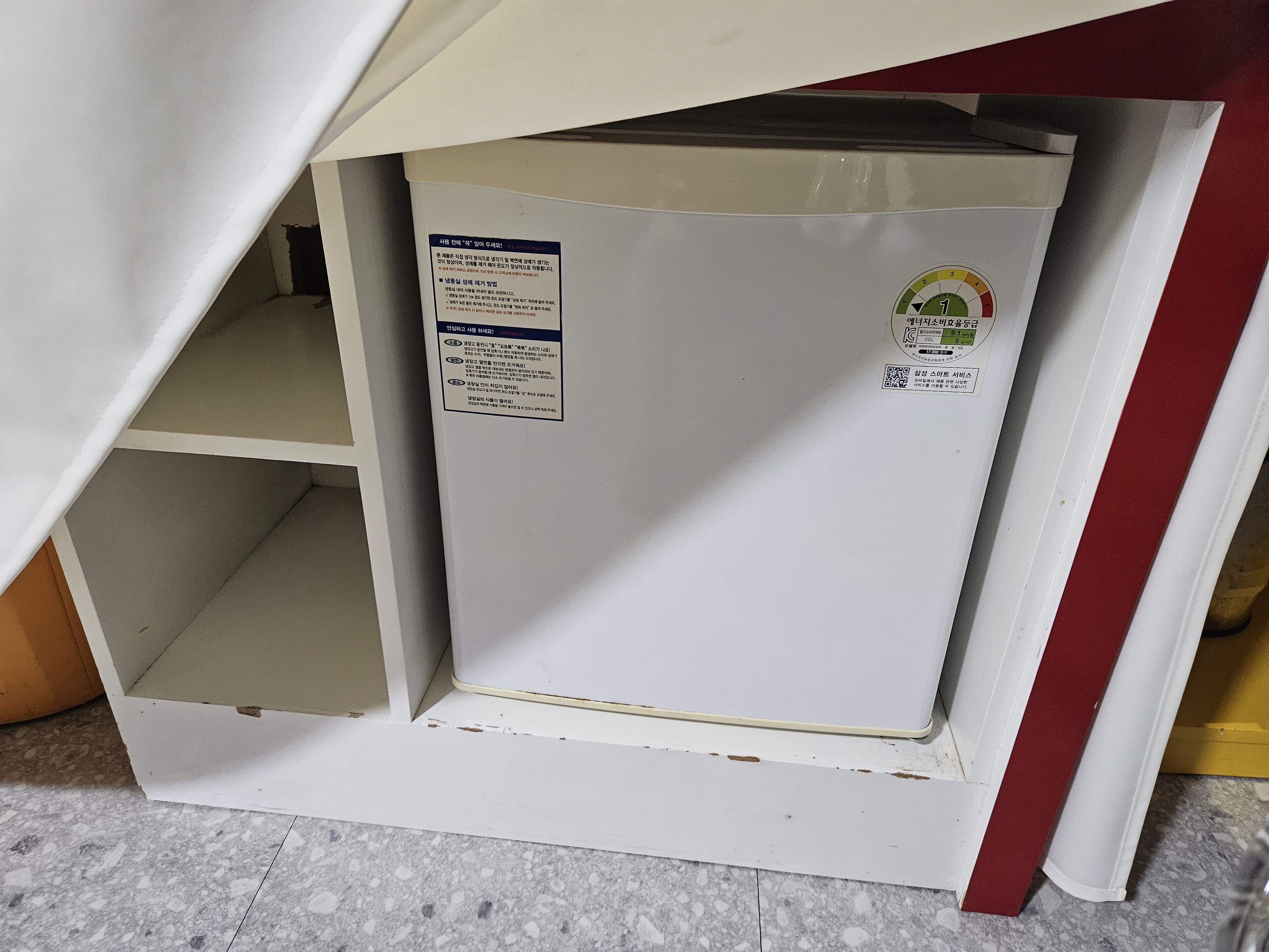 미니 냉장고가 숨겨져 있는데, 생수도 4병을 갖춰놔 요긴하게 잘 먹었다는..