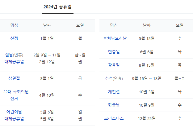 여기서 2024년 공휴일을 살펴보자.