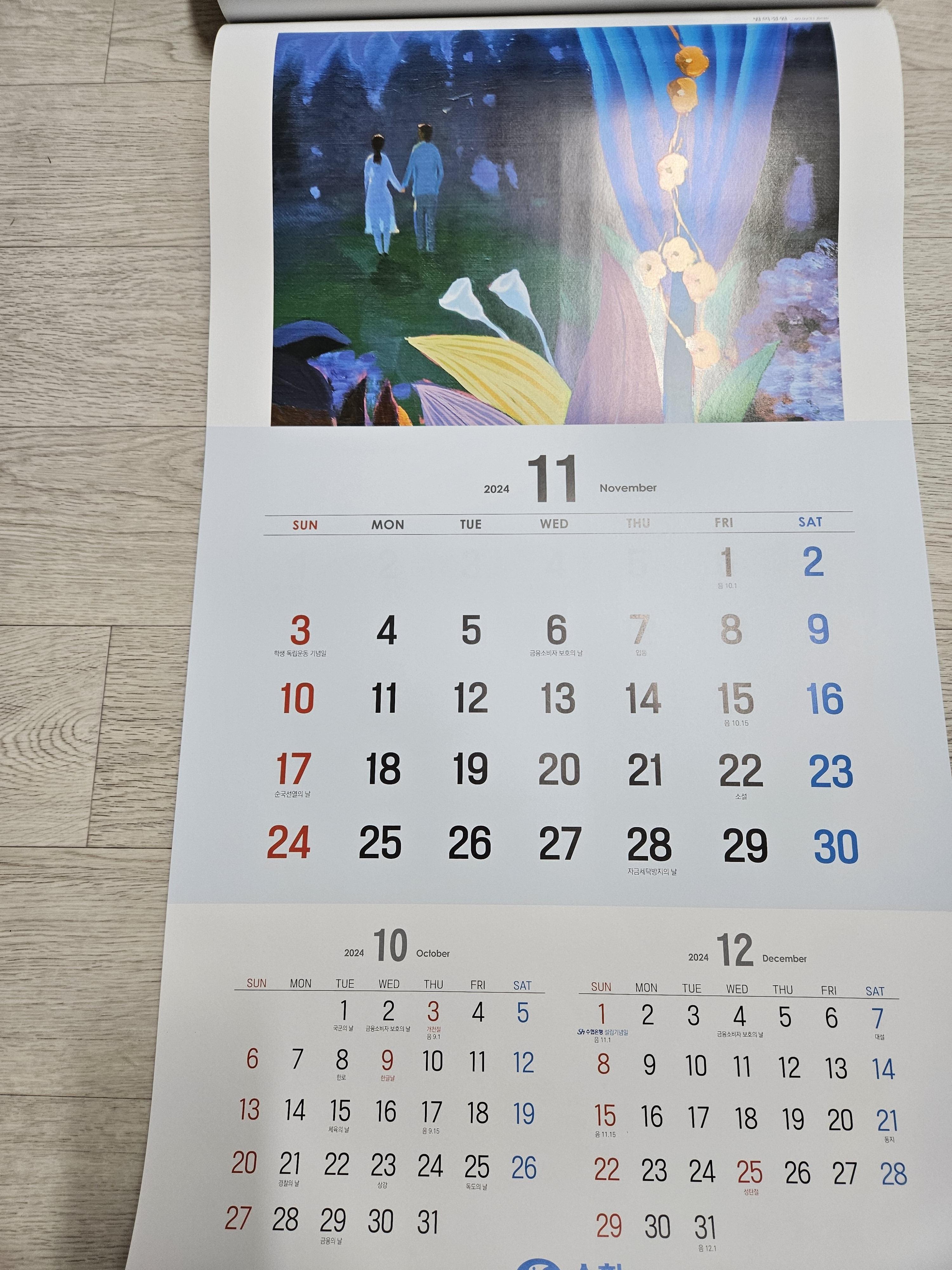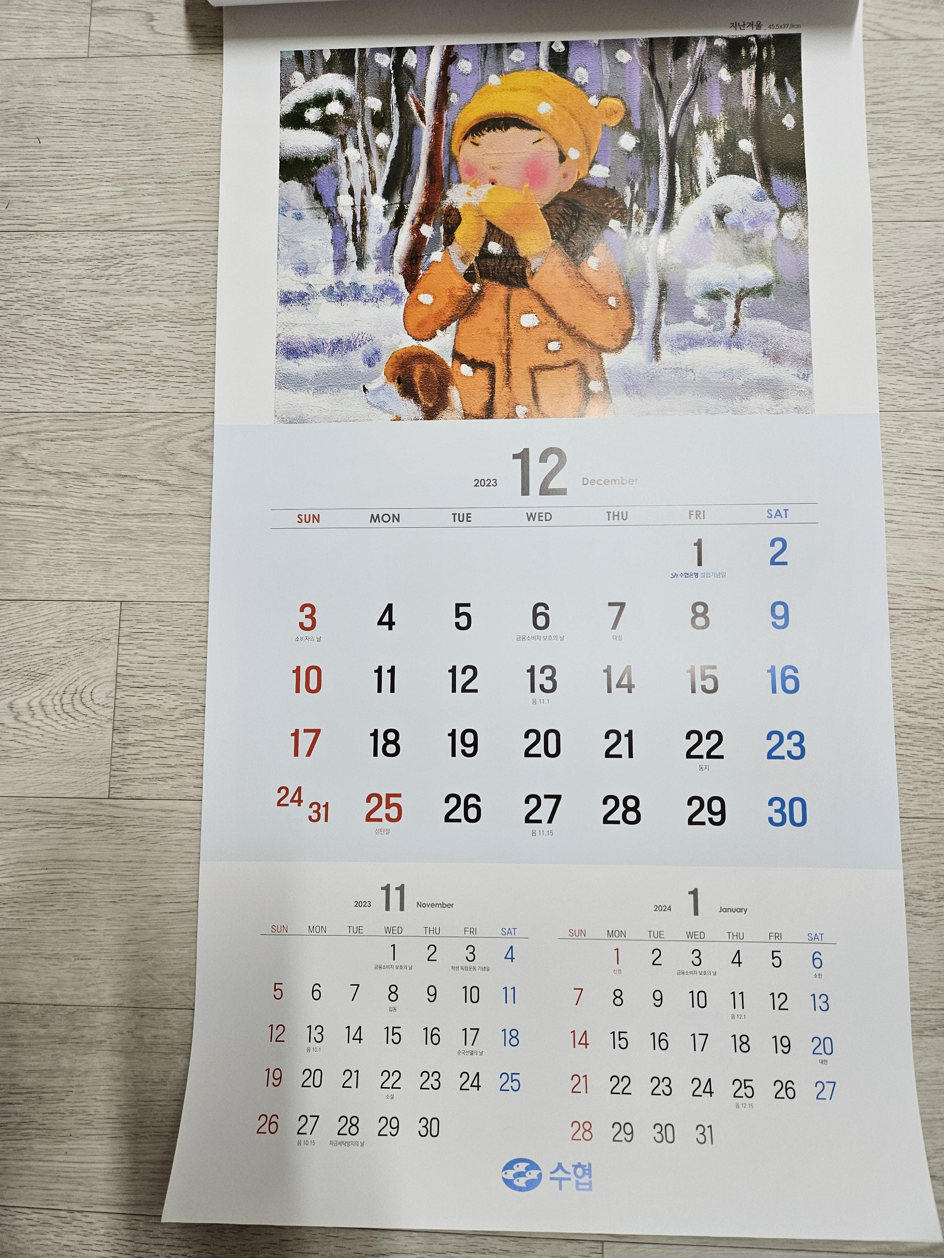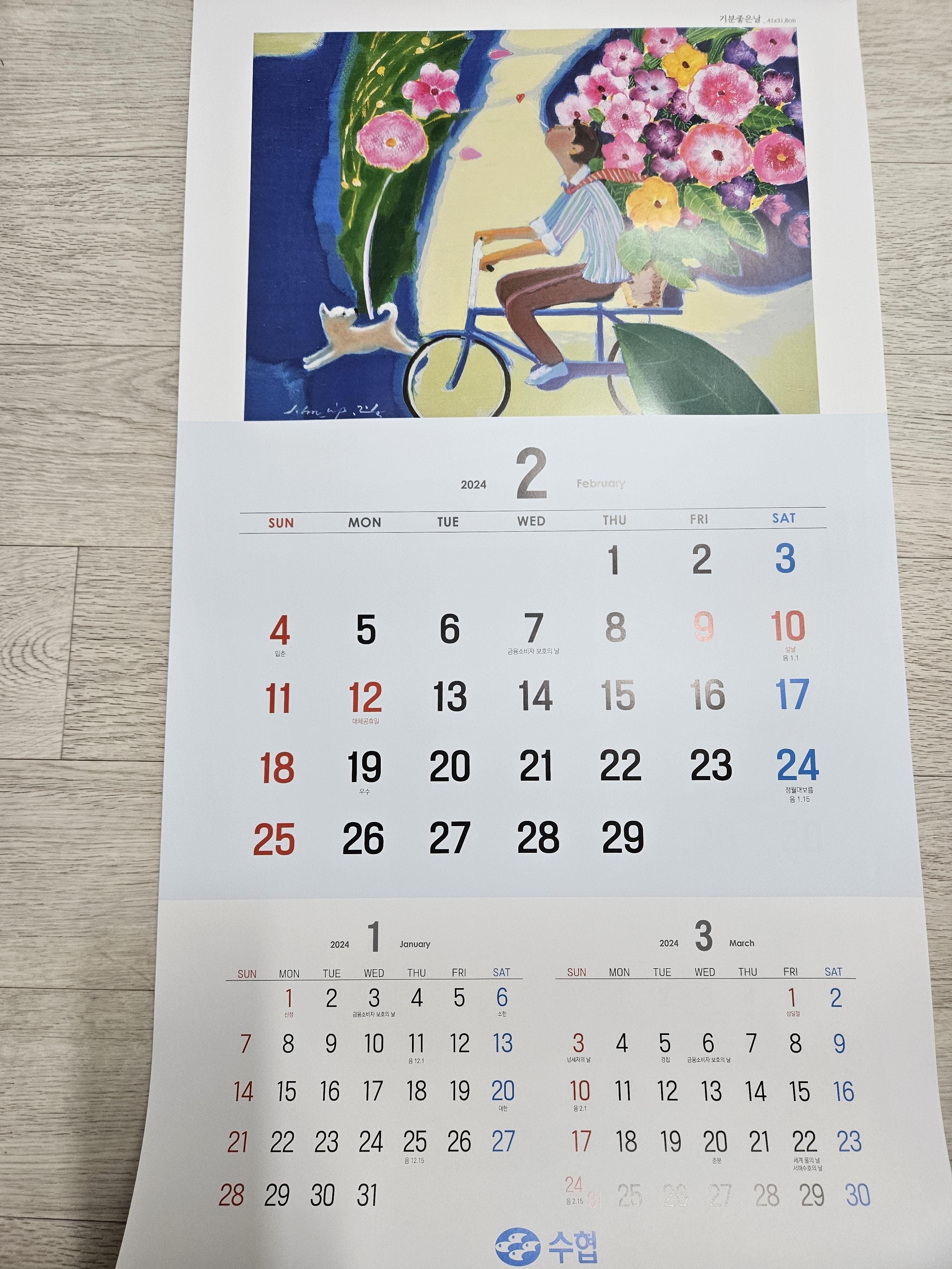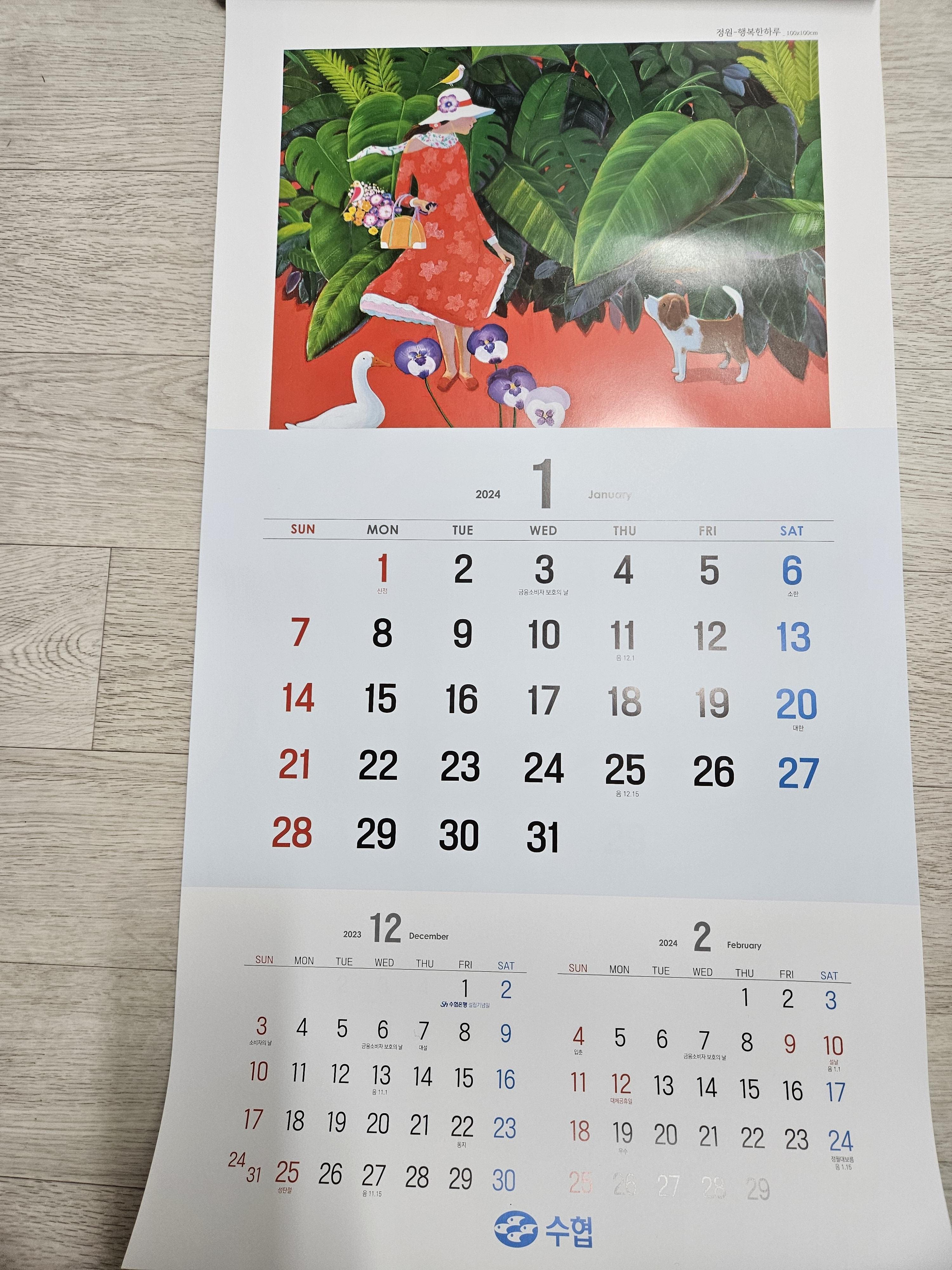 오늘은 아들내미 재활치료 받으러 강동성심병원 갔다가 수협은행 들러서 2024년 달력을 받아왔는데, 2024년 달력보기 공휴일 띠 등에 대해서 살펴보기로 하자.