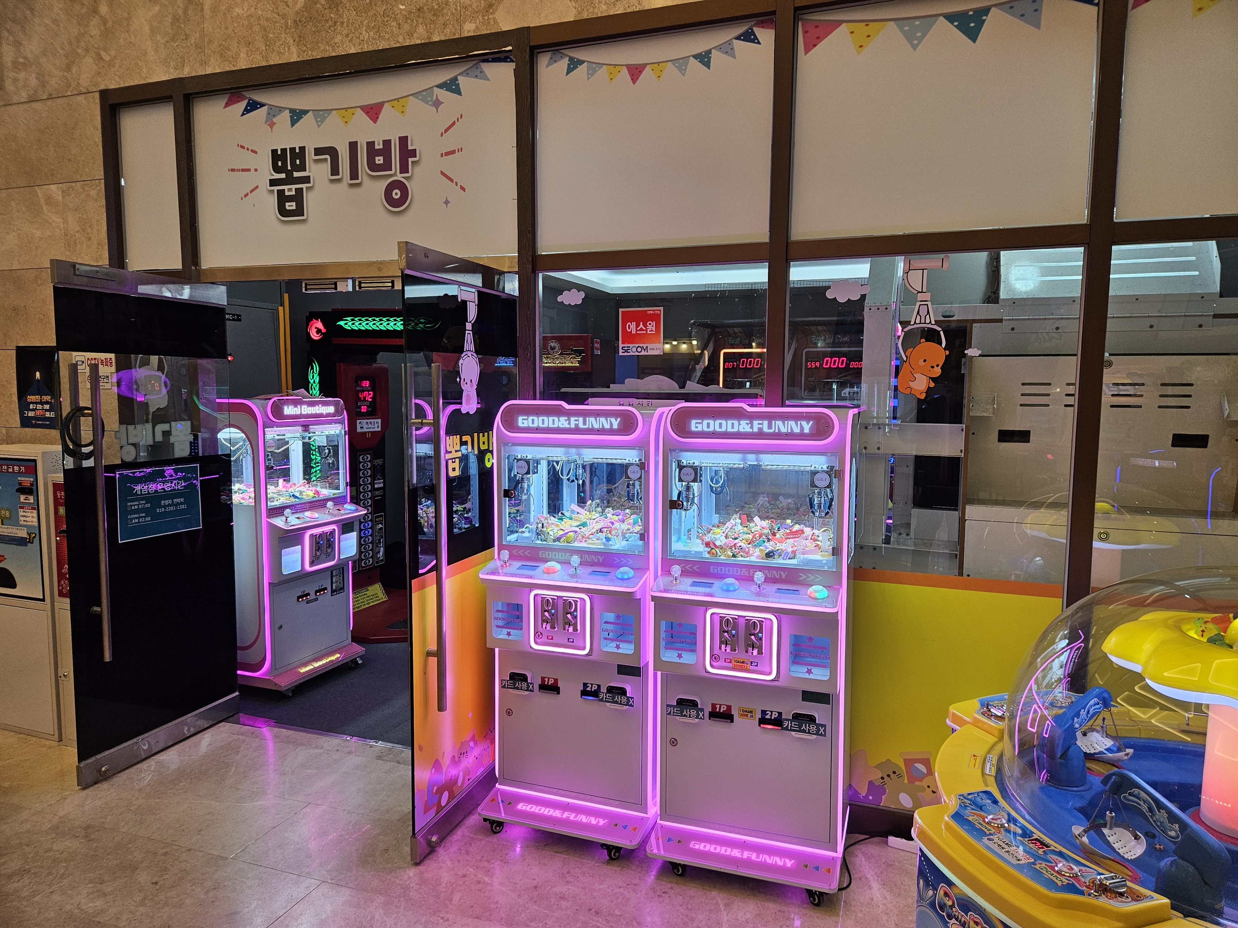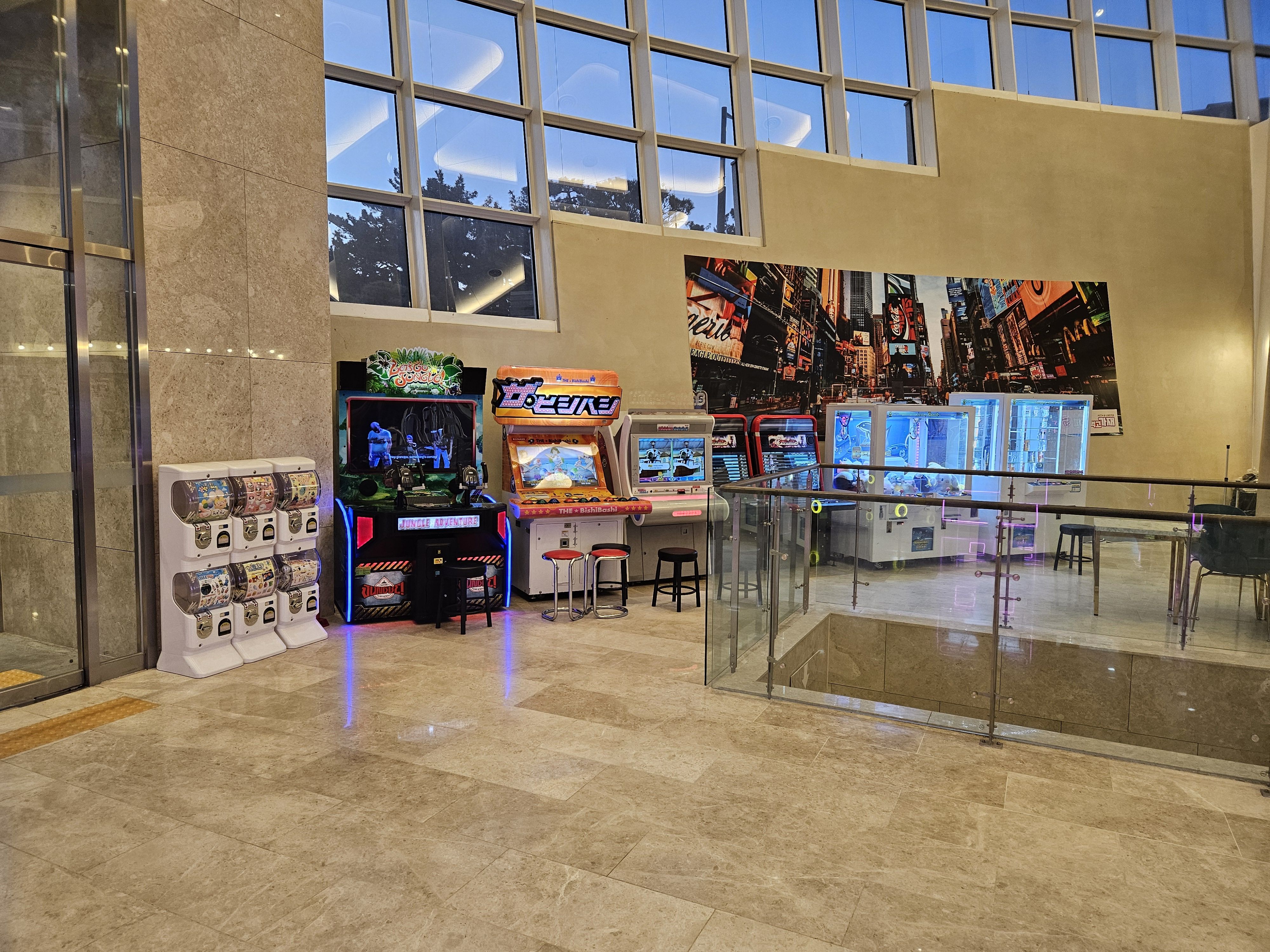 오락기가 많이 있는 게 아니지만 대표적인 격투기, 슈팅게임, 농구, 댄스게임 등이 있어서 가족, 연인들끼리 쿵짝이 잘 맞게 돌아가는 게임장이다.