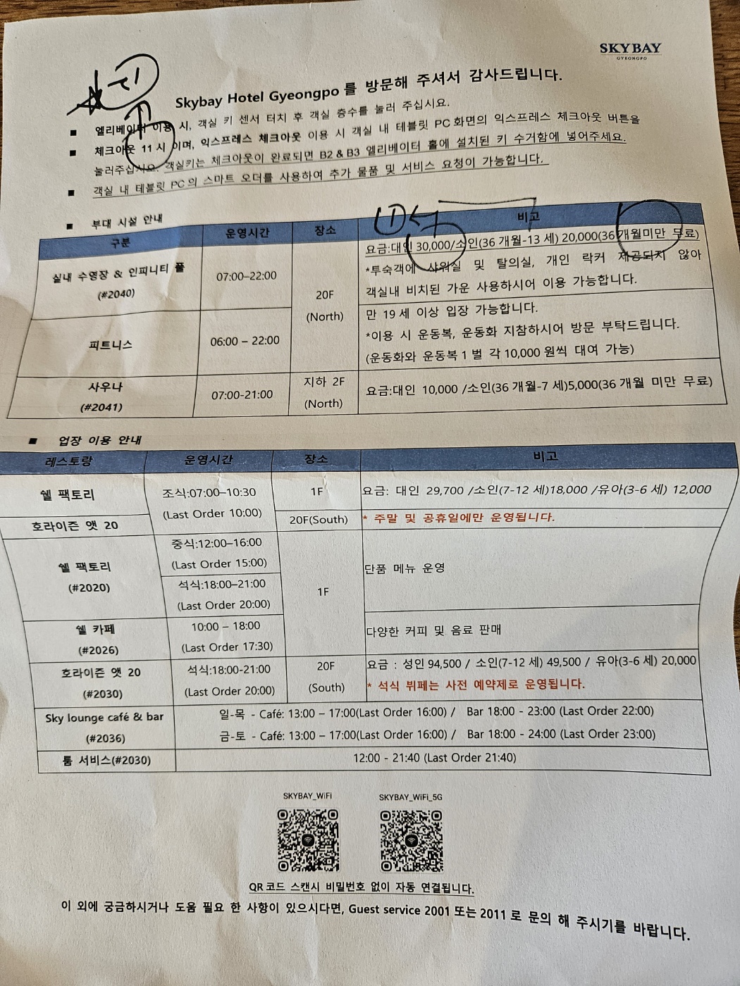 스카이베이호텔 경포 사용 설명서이다.