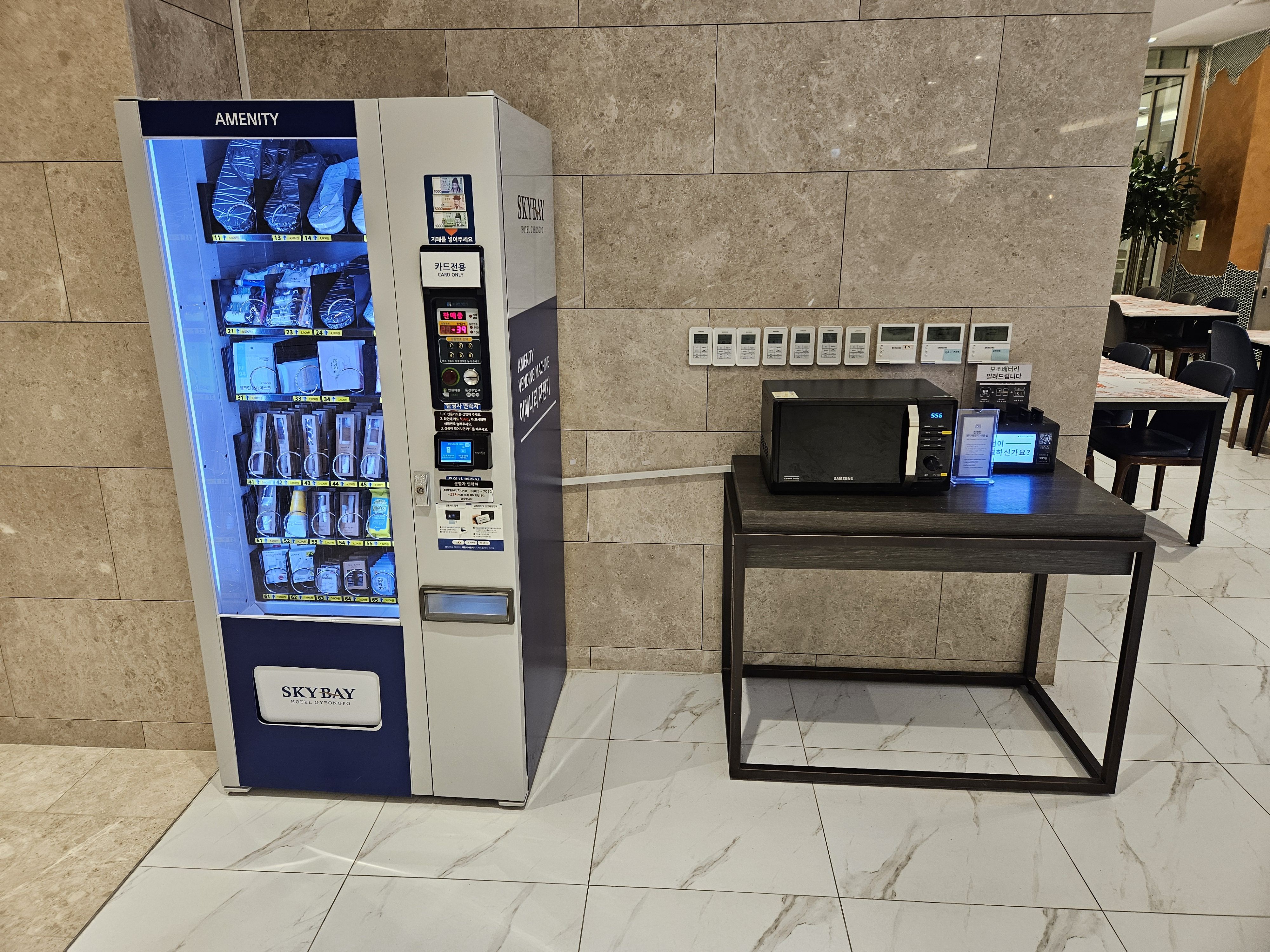 객실에 전자레인지가 없지만, 이렇게 1층에 어메니티 자판기와 전자레인지가 비치돼 있어서 우리같은 소박함을 즐기는 사람들에게는 최고의 희망처가 아닐런지.