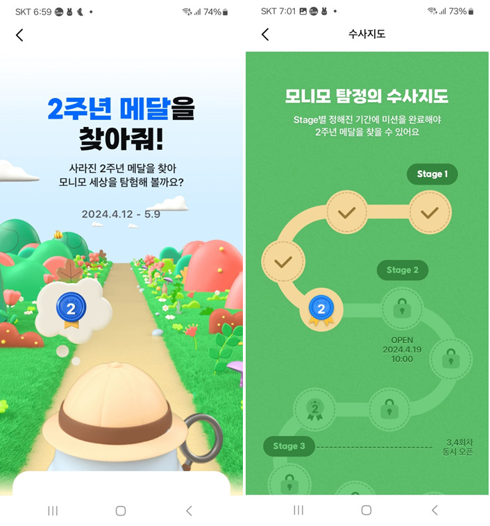 2주년 메달을 찾아줘 이벤트이다. 탐정도 나오고 수사지도도 나와서 어렵게 생각했는데 쉽게 1단계를 통과 했다. ㅋㅋ