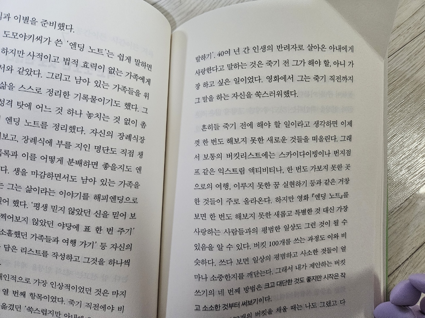 하지만, 영화 '엔딩 노트'를 보면 한번도 해보지 못한 새롭고 특별한 것 대신 가장 사랑하는 사람들과의 평범한 일상도 그런 것이 될 수 있음을 알 수 있다.