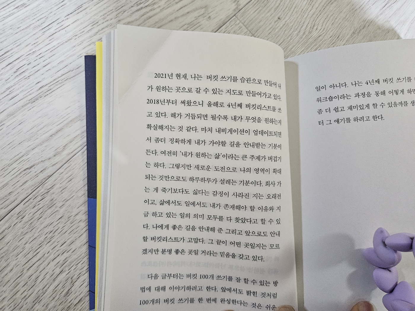 나는 버킷리스트가 되게 거창하고 이루기 힘든 것들을 나열하는 거라 생각했는데, 그걸 깨우쳐 준 게 이 책이다.
