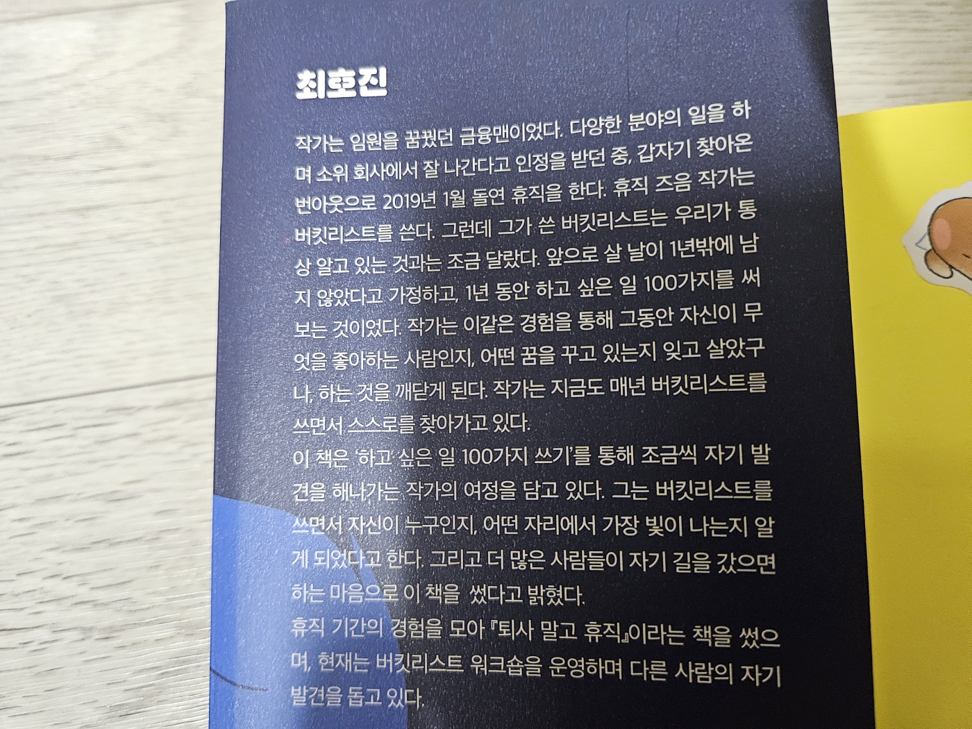 작가는 임원을 꿈꿨던 금융맨이었는데, 번아웃으로 2019년 돌연 휴직을 하고 첫번째 책 '결국엔 자기 발견'이란 버킷리스트를 쓰면서 자신이 누구인지, 어떤 자리에서 가장 빛이 나는지 알게 된다는 책을 발간 하게 된다.
