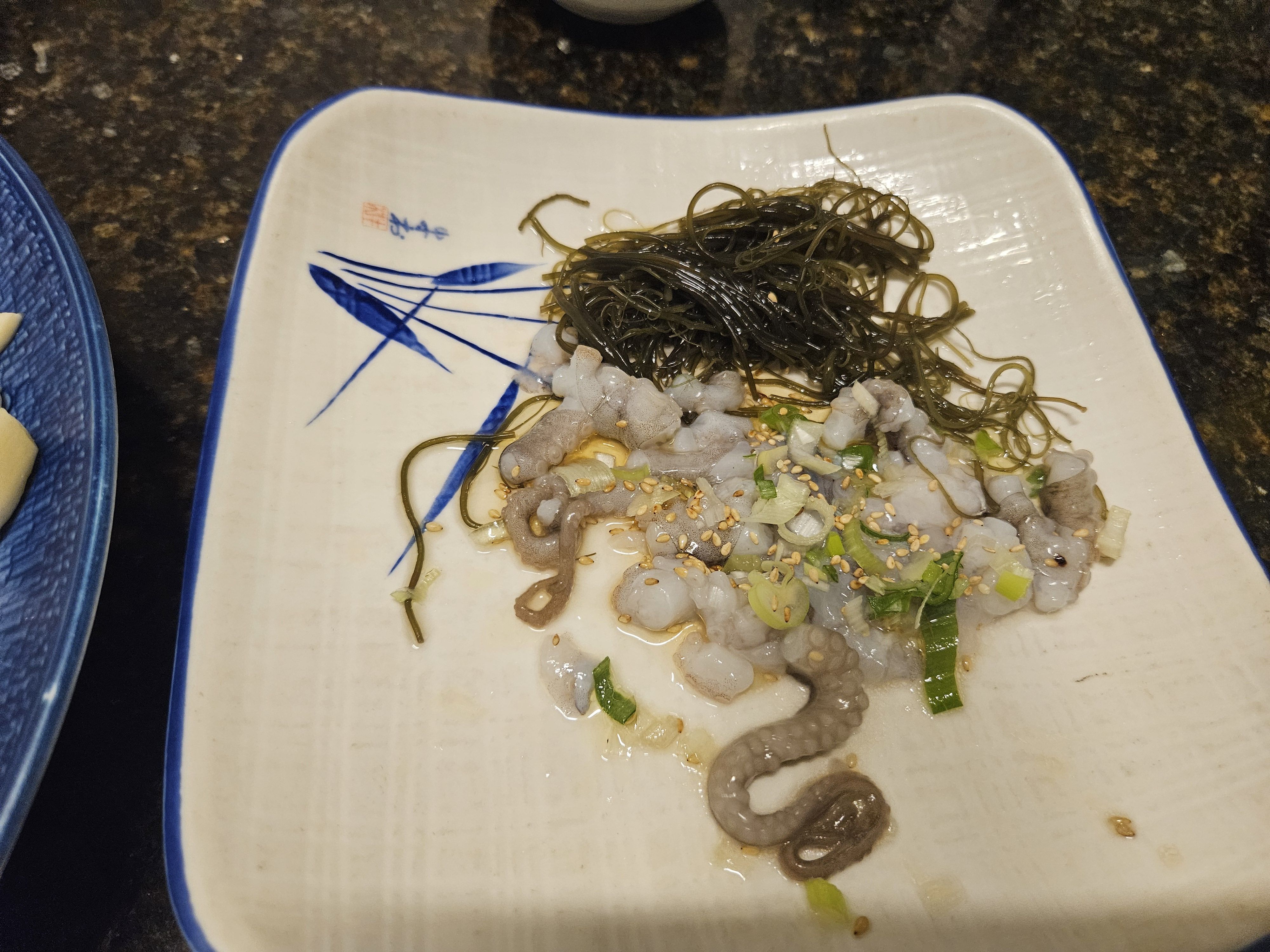 산낙지가 되게 비싼데도 코스로 나왔는데, 이모님이 싹싹 비워 먹으라고 당부(?) 하셨던 메뉴였어요.