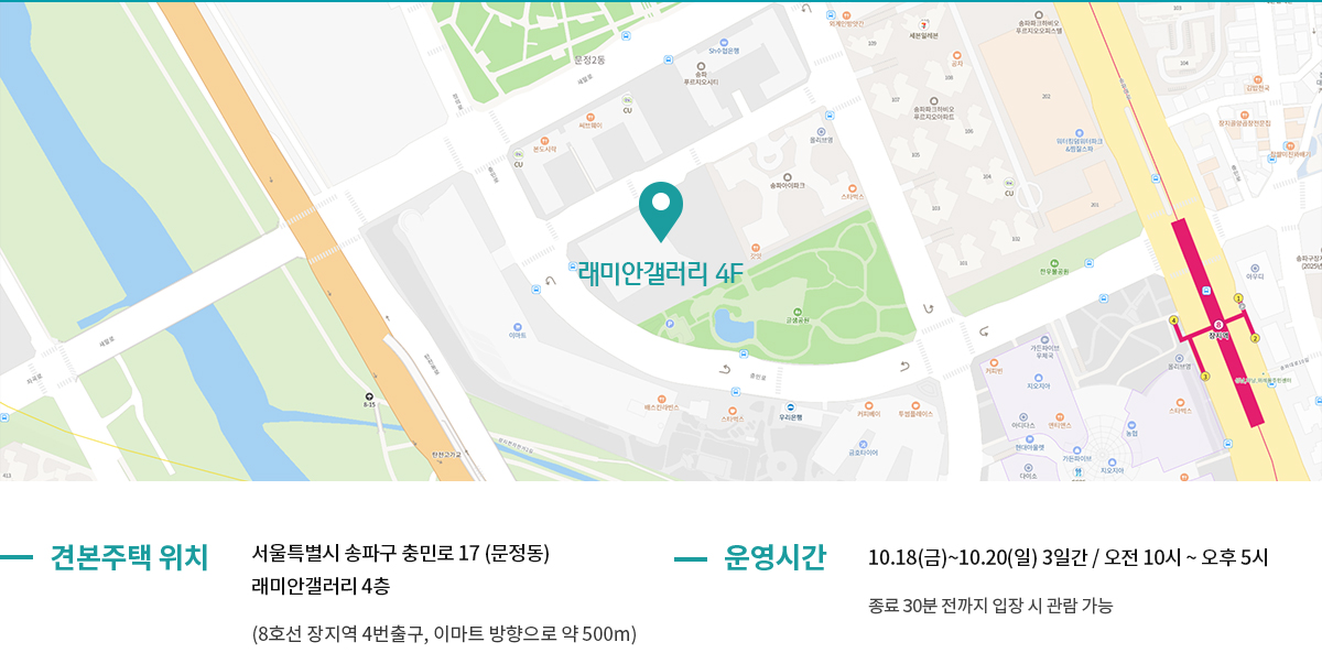 견본주택은 송파구 충민로 17 래미안갤러리 4층에 위치해 있다.