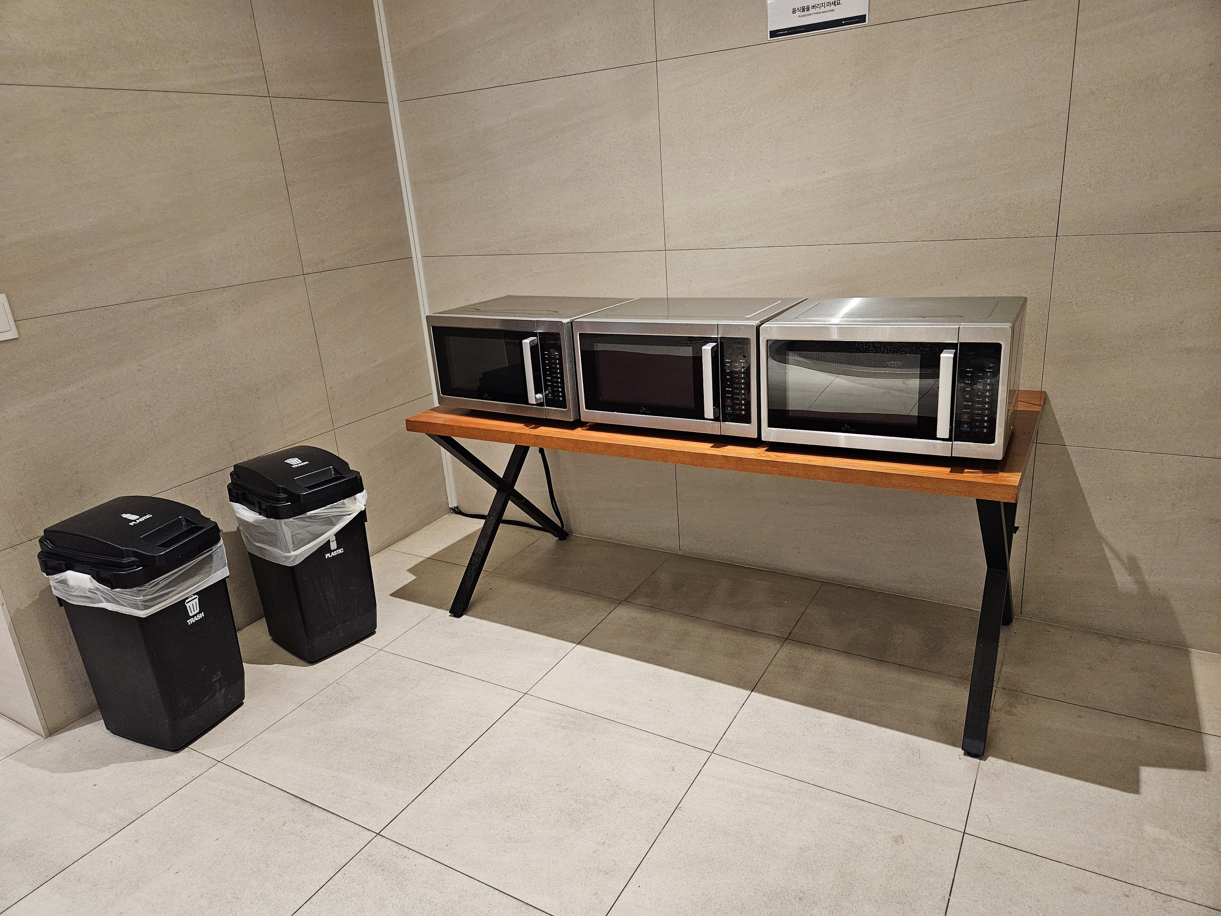 객실 내에 전자레인지가 없기에, 지하1층 입구에 비치돼 있는 전자레인지 3대를 이용해야 한다는 거,