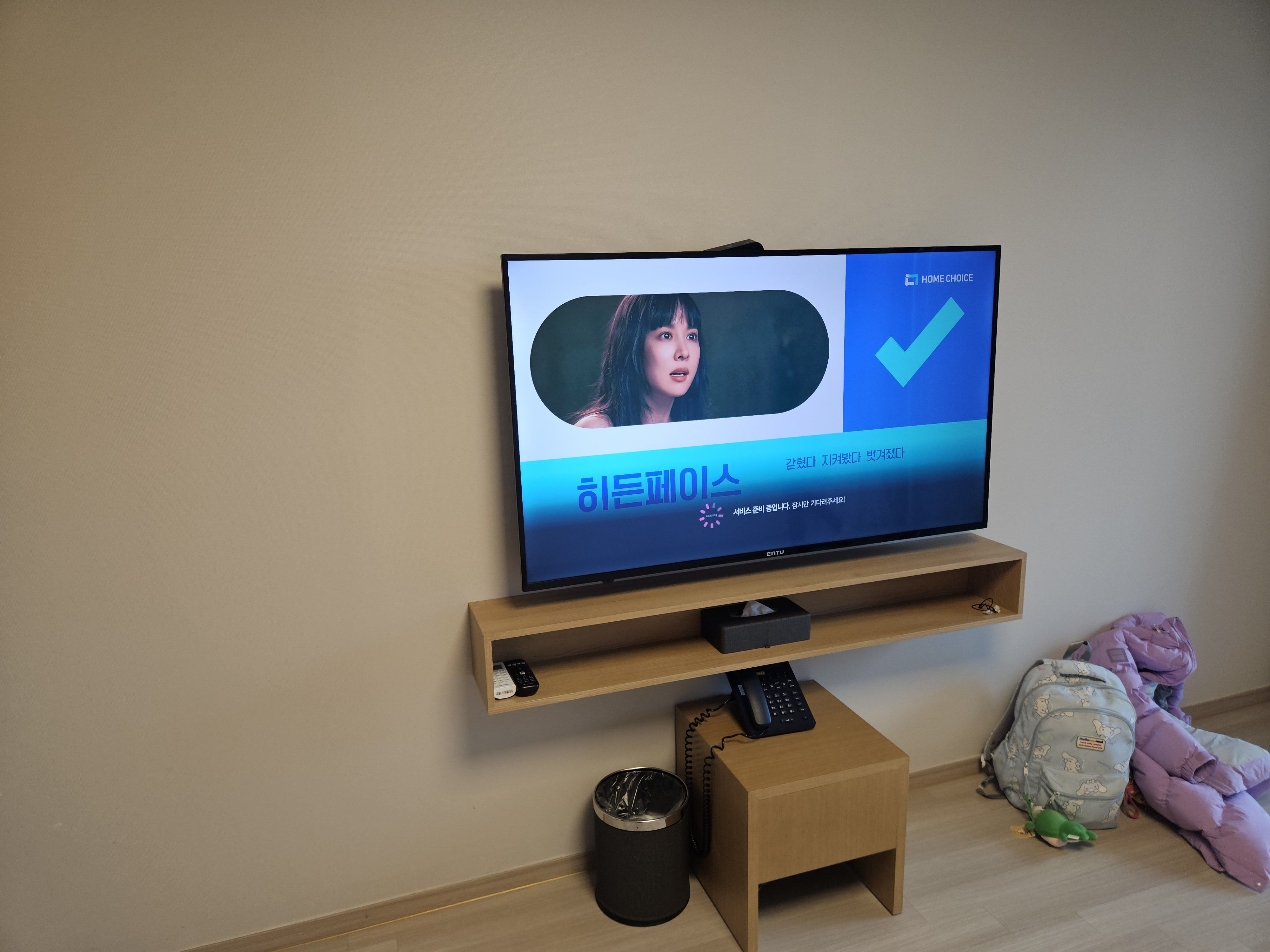 기본적으로 커피포트, 빌트인 냉장고, led TV, 헤어드라이어, 티테이블, 방석 등이 있고요.
