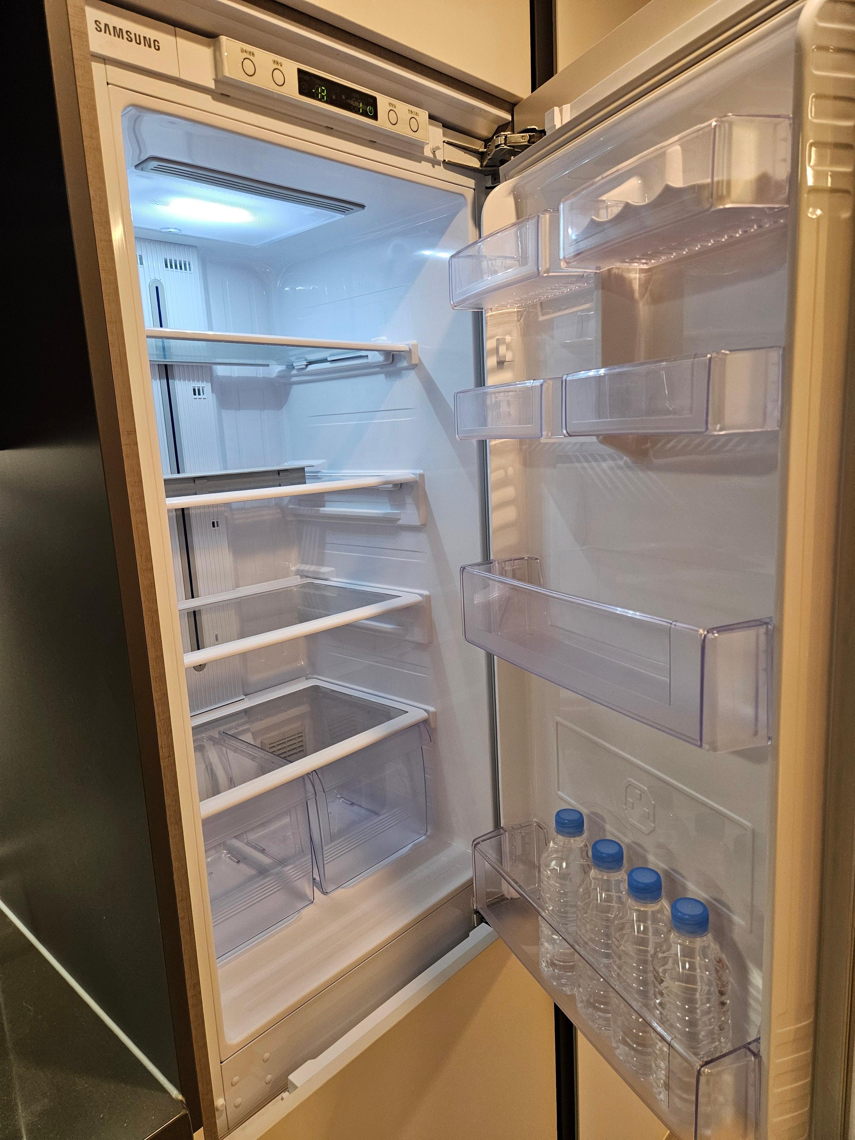 빌트인 냉장고가 커서 좋더라고요. 물론 생수 달랑 4개만 들어가 있고요. ㅎㅎ