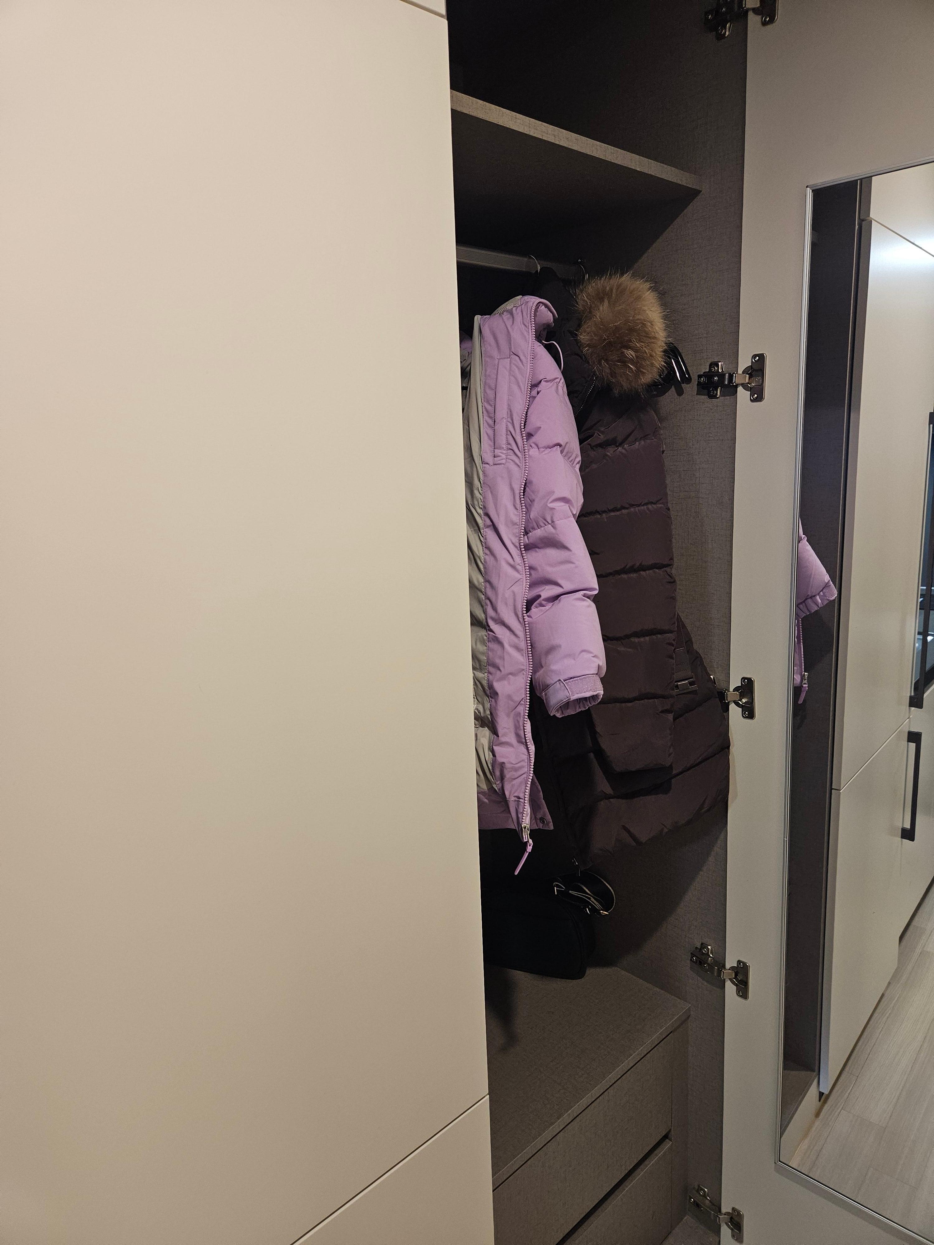 옷장에 옷을 걸 수 있고, 유리가 있어서 괜찮았어요.