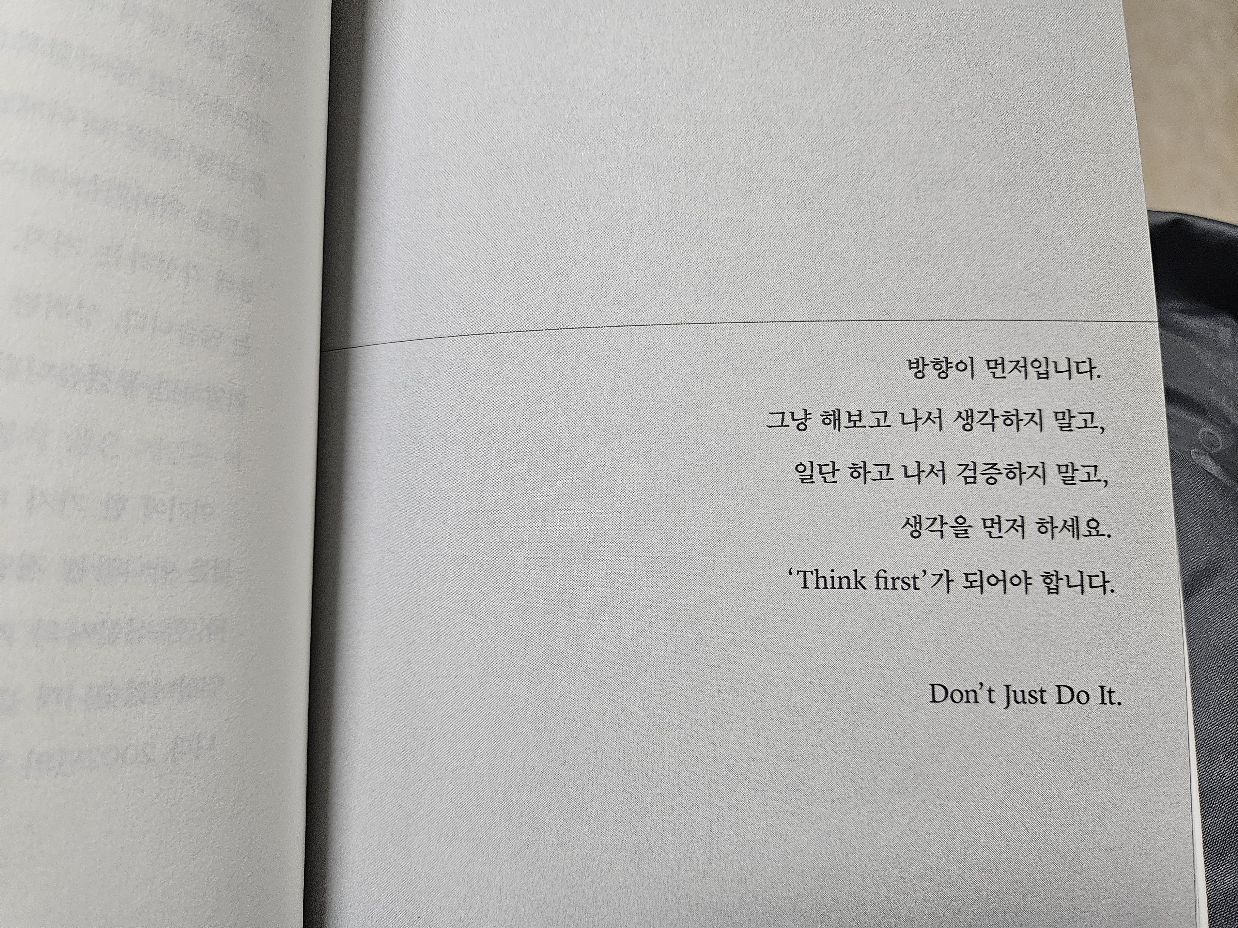 나이키처럼 그냥 뛸 때도 있지만, 생각을 먼저 하고 뭐든 하라는 것이다.