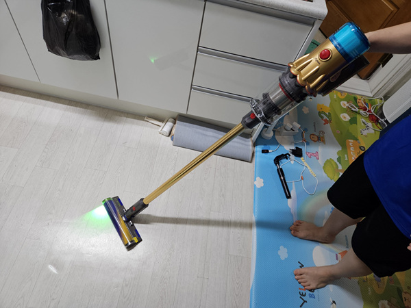 가장 좋은게 이렇게 불이 들어와 먼지를 직접 볼 수 있게 해 놓은 거에요. 더 깔끔한 청소가 가능하다는 장점이 있지만, 먼지가 보임으로서 더 오랫동안 해야한다는 단점도 있는 거 같아요.