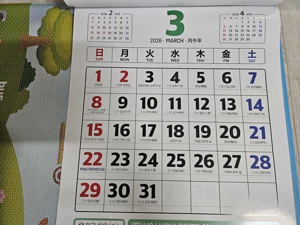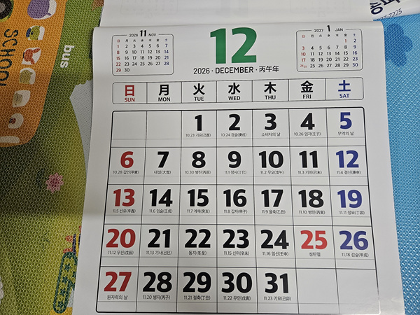 올해도 어김없이 새 달력을 받아와 이렇게 글을 쓰게 됩니다.ㅎㅎ
