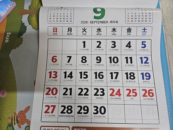 9월 달력 휴일